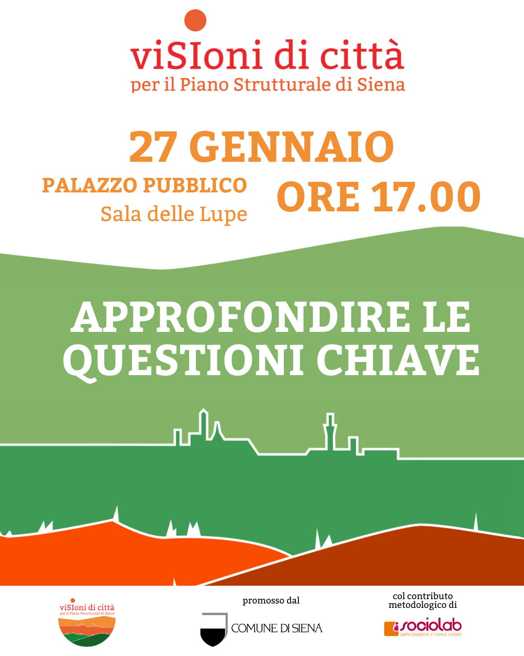 Cogliamo l’occasione per invitarVi al secondo appuntamento, “Approfondire le questioni chiave”. Si terrà martedì 27 gennaio 2026 alle ore 17 presso la Sala delle Lupe del Palazzo Pubblico a Siena.